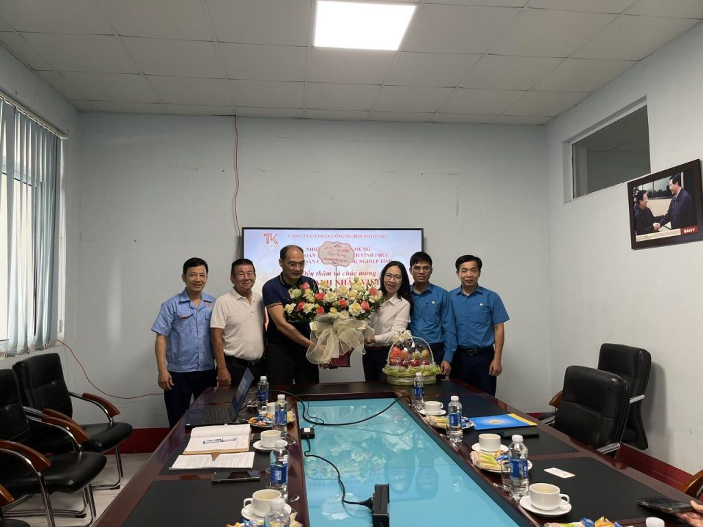 Tại buổi thăm, các đồng chí đại diện công đoàn lao động tỉnh đã thay mặt cán bộ, đảng viên và nhân dân toàn tỉnh gửi lời chúc mừng tốt đẹp nhất đến Ban lãnh đạo, cán bộ, nhân viên công ty Toyotaki nhân dịp Kỷ niệm Ngày Doanh nhân Việt Nam. Đoàn ghi nhận những đóng góp to lớn của đội ngũ doanh nhân, doanh nghiệp trong phát triển kinh tế – xã hội của tỉnh trong những năm qua đồng thời bày tỏ mong muốn công ty Toyotaki tiếp tục phát huy những thành tích đã đạt được, nỗ lực phấn đấu để ngày càng phát triển hơn nữa, góp phần xây dựng quê hương ngày càng giàu đẹp, văn minh.