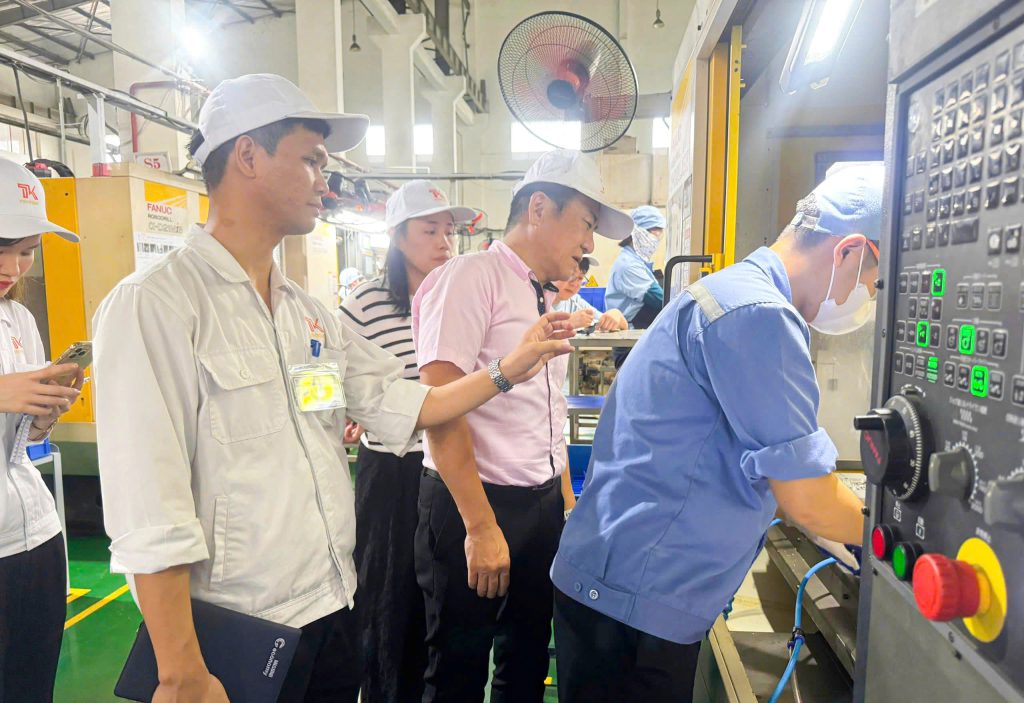 Trong chuyến thăm, đoàn đã trực tiếp khảo sát dây chuyền sản xuất linh kiện vỏ máy ảnh đúc từ hợp kim magie – loại vật liệu thế hệ mới nổi bật với ưu điểm siêu nhẹ, độ bền cao, đang được ứng dụng ngày càng rộng rãi trong ngành điện tử và thiết bị công nghệ.